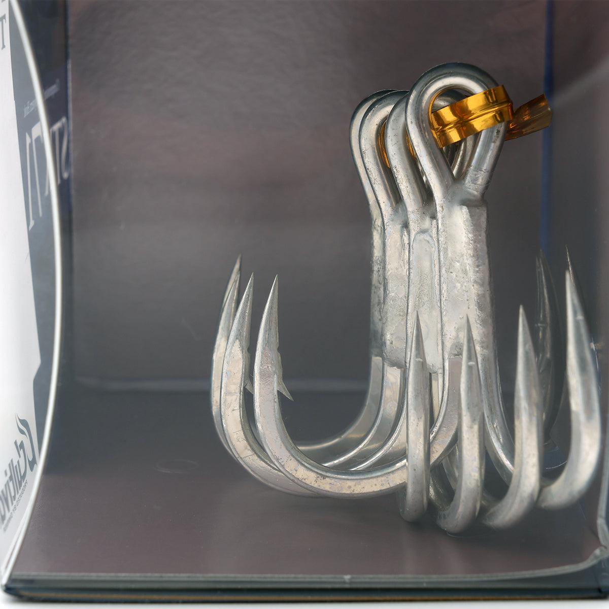 小径フックでモンスターを仕留めるオーナーの新コンセプトマグロトレブル。シビアな状況でもプラグの操作感と浮力を残し、本来のアクション特性を発揮。口周りを狙って掛けるカーブポイントフック。深く針を掛けてパワーファイトできる貫通力を保持。小径プラグなどを口元に掛けるためのトレブルフックです。_x000B_