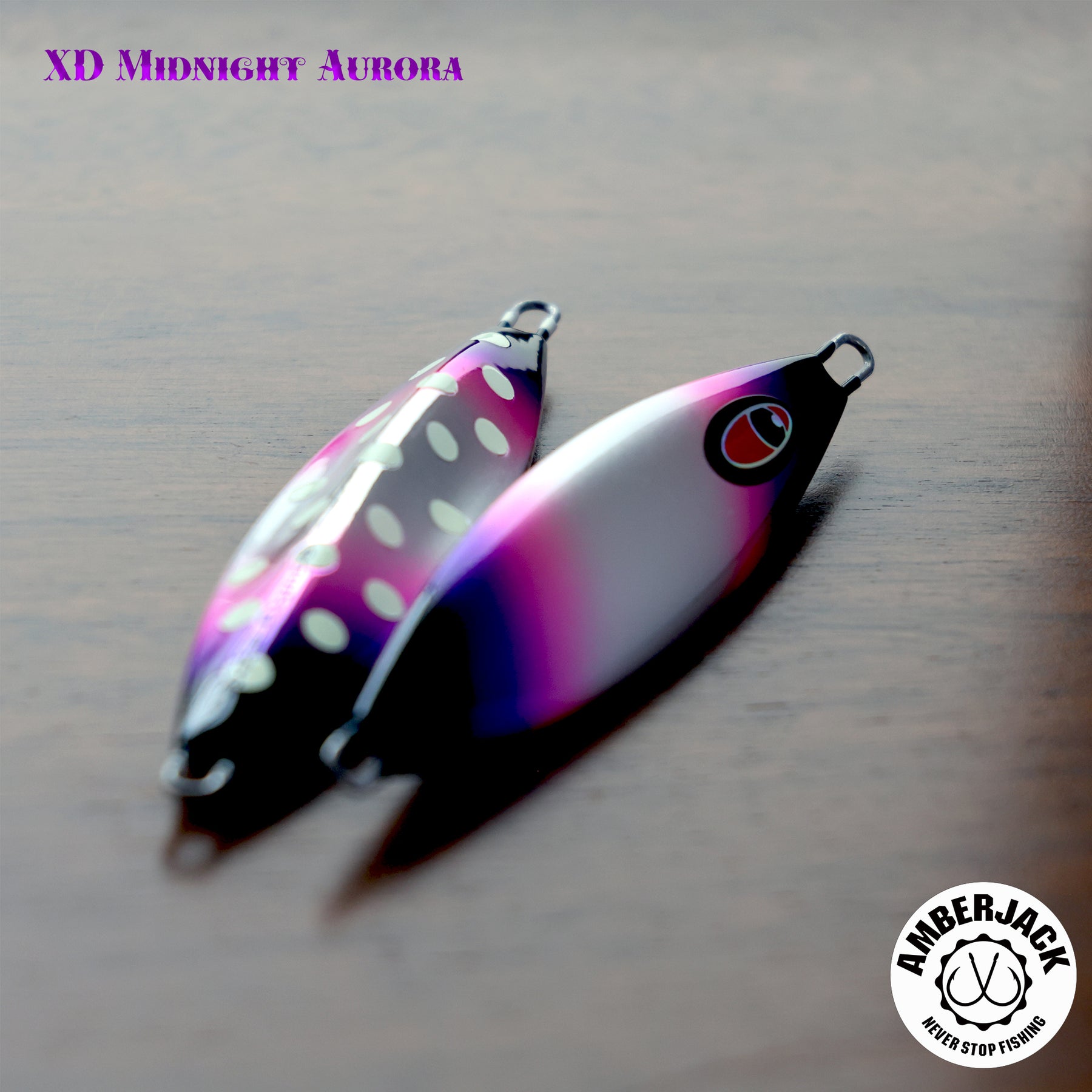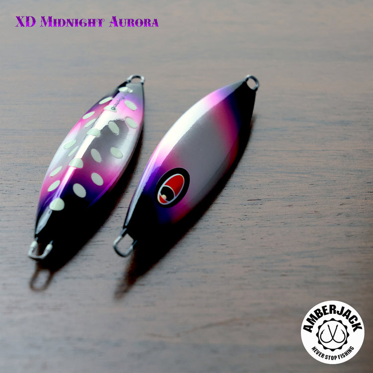 シーフロアコントロールの中でも「フォールの魔術師」として異彩を放つモデル「gawky(ガーキー)」。 アンバージャック限定の別注仕様**「XDミッドナイトオーロラ」は、ベースに採用したアルミホログラムの鈍い輝きに、紫外線に反応して自ら発光する蛍光ピンク**、そして裏面のスペシャルグローを融合。ガーキー独自のバイブレーションフォールによって、ターゲットを魅了する多角的な光のアピールを繰り出します。