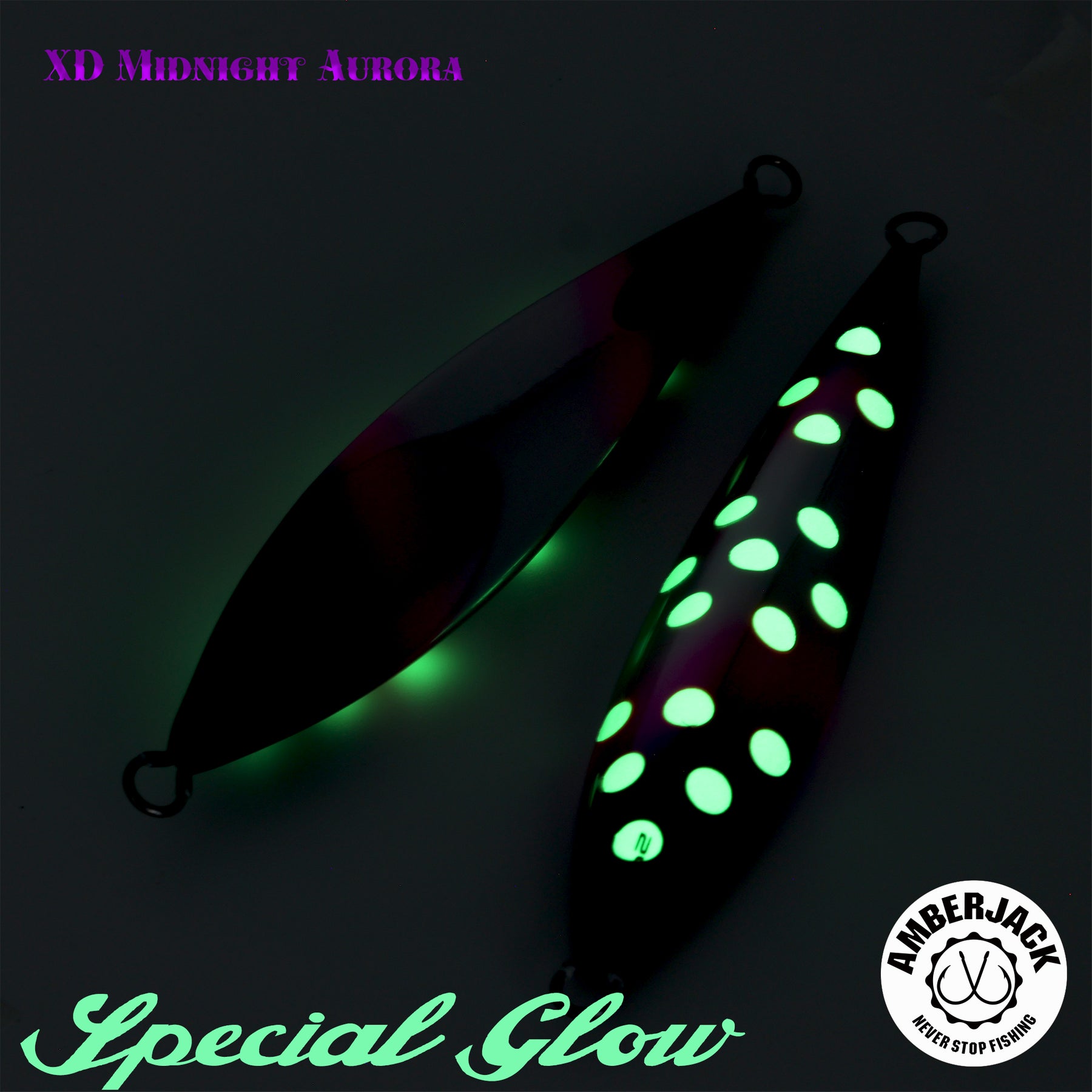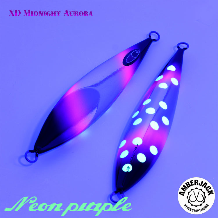 シーフロアコントロールの全モデルの原点であり、圧倒的な「滞空時間」を誇る傑作「レクター」。 アンバージャック限定の別注仕様**「XDミッドナイトオーロラ」は、ベースに採用したアルミホログラムの鈍い輝きに、紫外線に反応して自ら発光する蛍光ピンク**、そして裏面のスペシャルグローを融合。レクターが得意とするスローな水平フォールの中で、多角的な光のアピールをターゲットに叩き込みます。