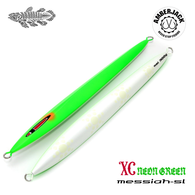 シーフロアコントロールの「救世主」、メサイアのDNAを受け継ぎ、よりテクニカルな操作を可能にした「メサイアセミロング」。 アンバージャック限定の別注カラーとして、圧倒的な膨張色である**「XCマットネオングリーン」と、最高峰の発光を誇る「パールノクチルカグロー」**を融合。深海の大型魚を仕留めるための、攻めの1本が完成しました。