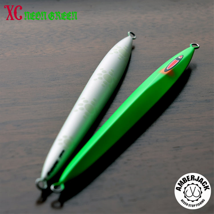 • 表面:XCマットネオングリーン 潮色に左右されず、水中での視認性が最も高いネオングリーン。あえてツヤを消した「マット仕上げ」にすることで、ギラつきを抑え、深場で際立つ「塊としての存在感」を強調。ターゲットに迷いを与えず、迷わずバイトへ持ち込みます。