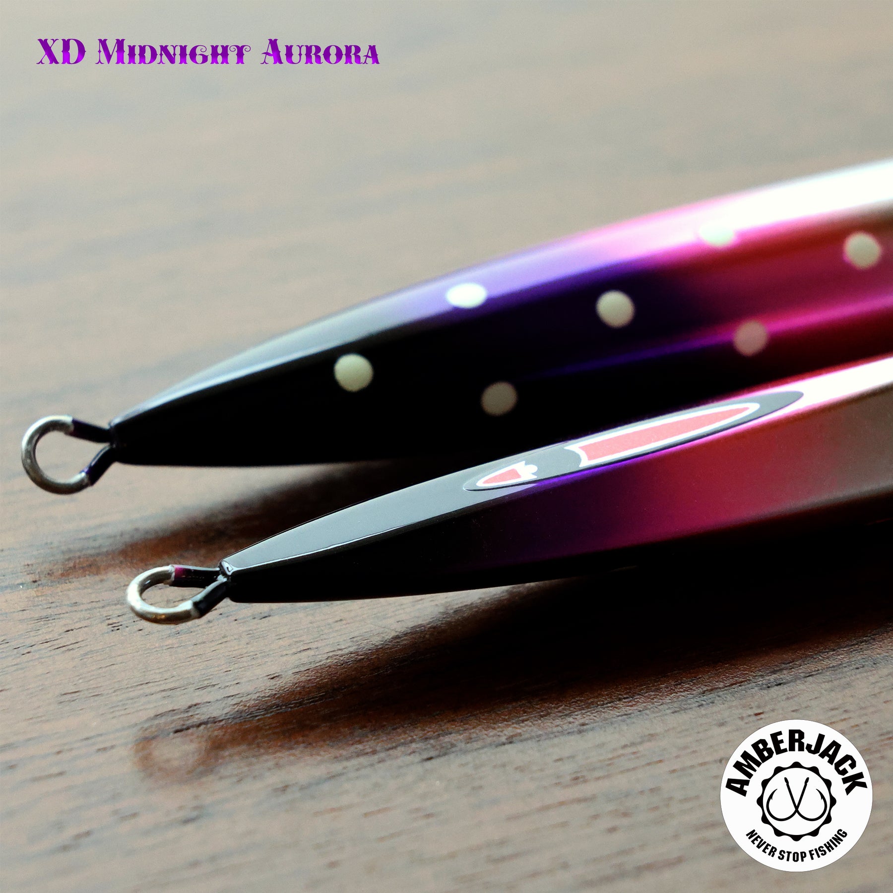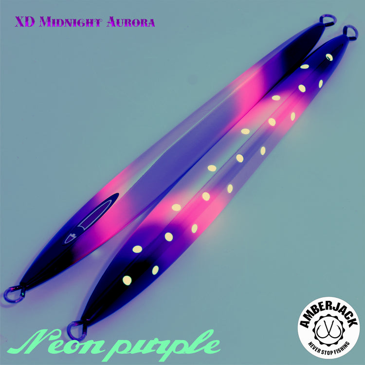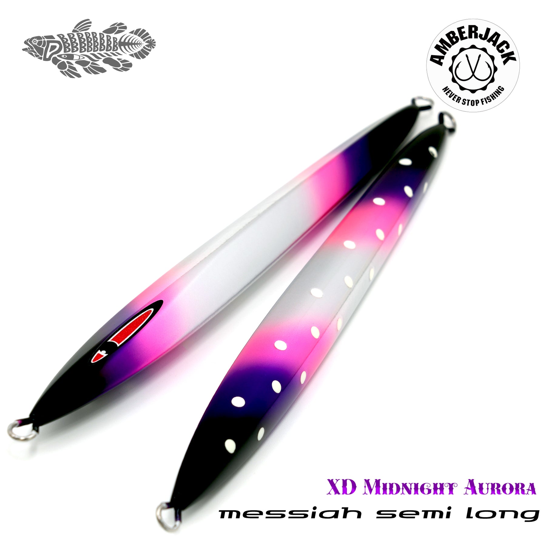 メサイアの爆発的なスライド性能を継承しつつ、よりテクニカルな操作を可能にした「メサイアセミロング」。 アンバージャック別注仕様**「XDミッドナイトオーロラ」は、ベースに採用したアルミホログラムの鈍い輝きに、紫外線で自ら発光する蛍光ピンク**、そして裏面のスペシャルグローを融合。キレのあるアクションの中で、多角的な光のレイヤーをターゲットに焼き付けます。