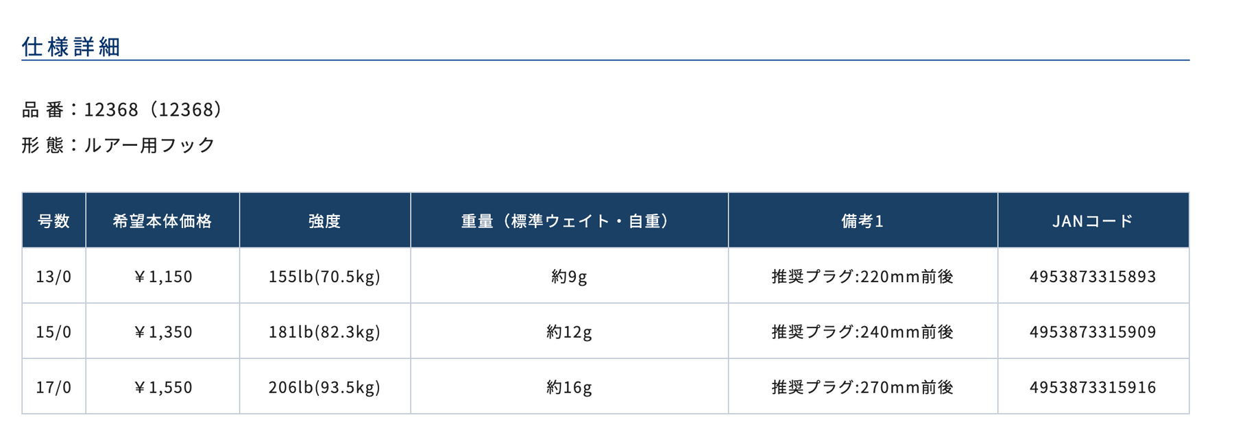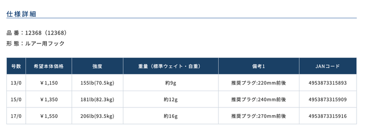 ●大型プラグに対応したフック重量はルアーアクションを安定させ、アクションエラーを防ぐ。