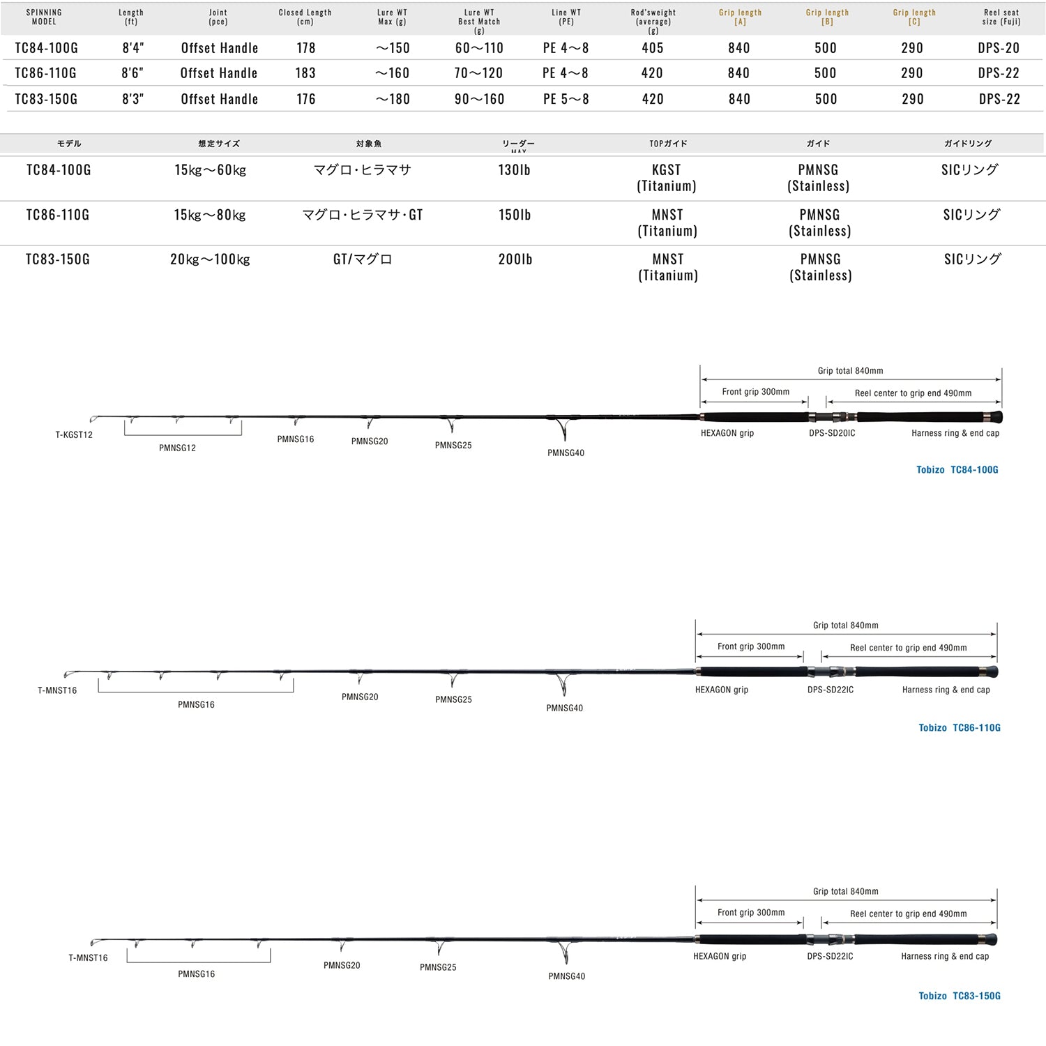 ゼナックのGTロッド20年の経験をベースにスーパーカーボンを取り入れる事でさらに大きな飛距離とキレの有るルアーアクションでビッグGT、ビッグツナを攻略する。150g前後のルアーにベストマッチ。持ち重りのないロッドバランスが体力消耗も最小限に抑え、一日中フルキャストを繰り返すボートゲームをサポート。故障の少ない頑強な造りも遠征では必須項目。単にロッドスペックで語るだけでなく、長丁場の遠征を知り尽くしたゼナックならではのノウハウが生きている。飾りを捨てロッドの本質のみを徹底追及したトビゾーは今後のニュースタンダードとなる。