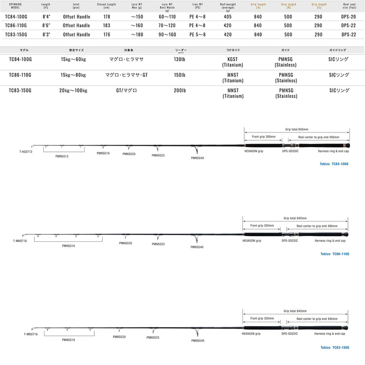 60g~150gのルアーの遠投に優れ、ナブラ打ちで今まで届かなかったヒットゾーンに着水させる事が出来る。マグロのキャスティングゲームにおいて 40g程度のルアーでも充分な飛距離と誘い出すルアーアクションを演出可能なロッドテーパーに設計。メインターゲットに 30㎏ ~50㎏サイズのマグロを想定したロッドパワーで、テスト釣行では 70kgオーバーのマグロも問題なく釣り上げたポテンシャルをもつ。また、マグロ特有の長時間ファイトも想定し、釣り人の負担を最小限に抑えながら大型マグロをじっくり浮かせるロッドパワーがランディングの確率を上げる。